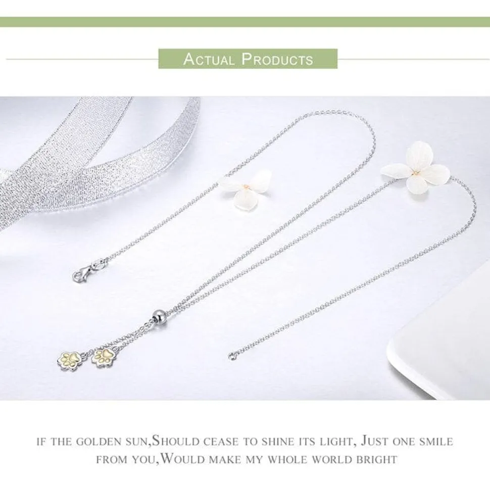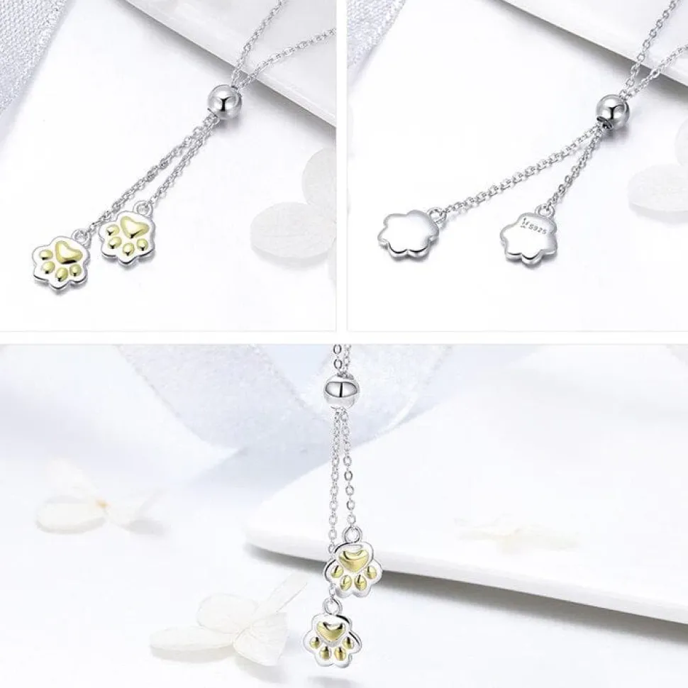 This beautiful necklace has an adjustable slide so you can put the little paws where you like them. It has an 18″ Sterling Silver chain with adjustment to 16″ and 14″. Perfect for any pet lover! The paws are as cute as can be! Make sure to look at our other adorable pet jewelry while you’re here!