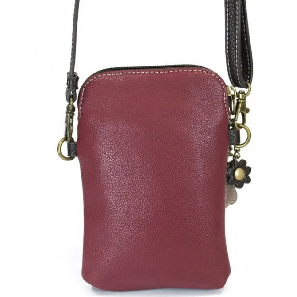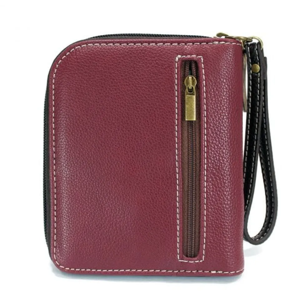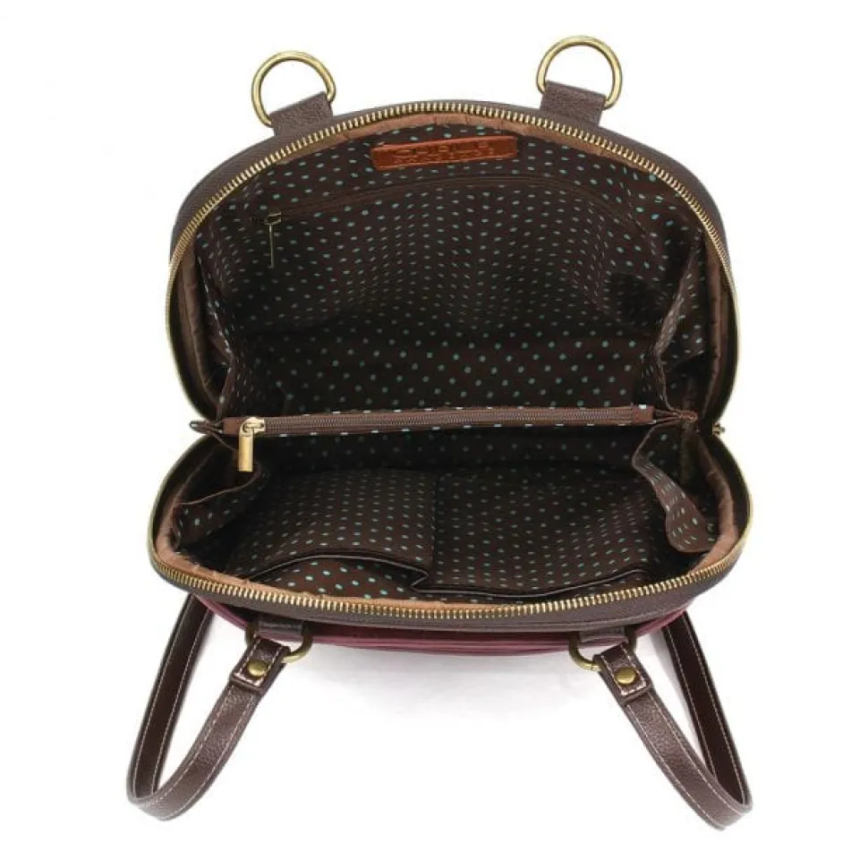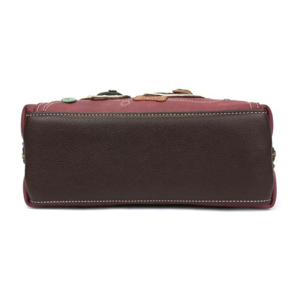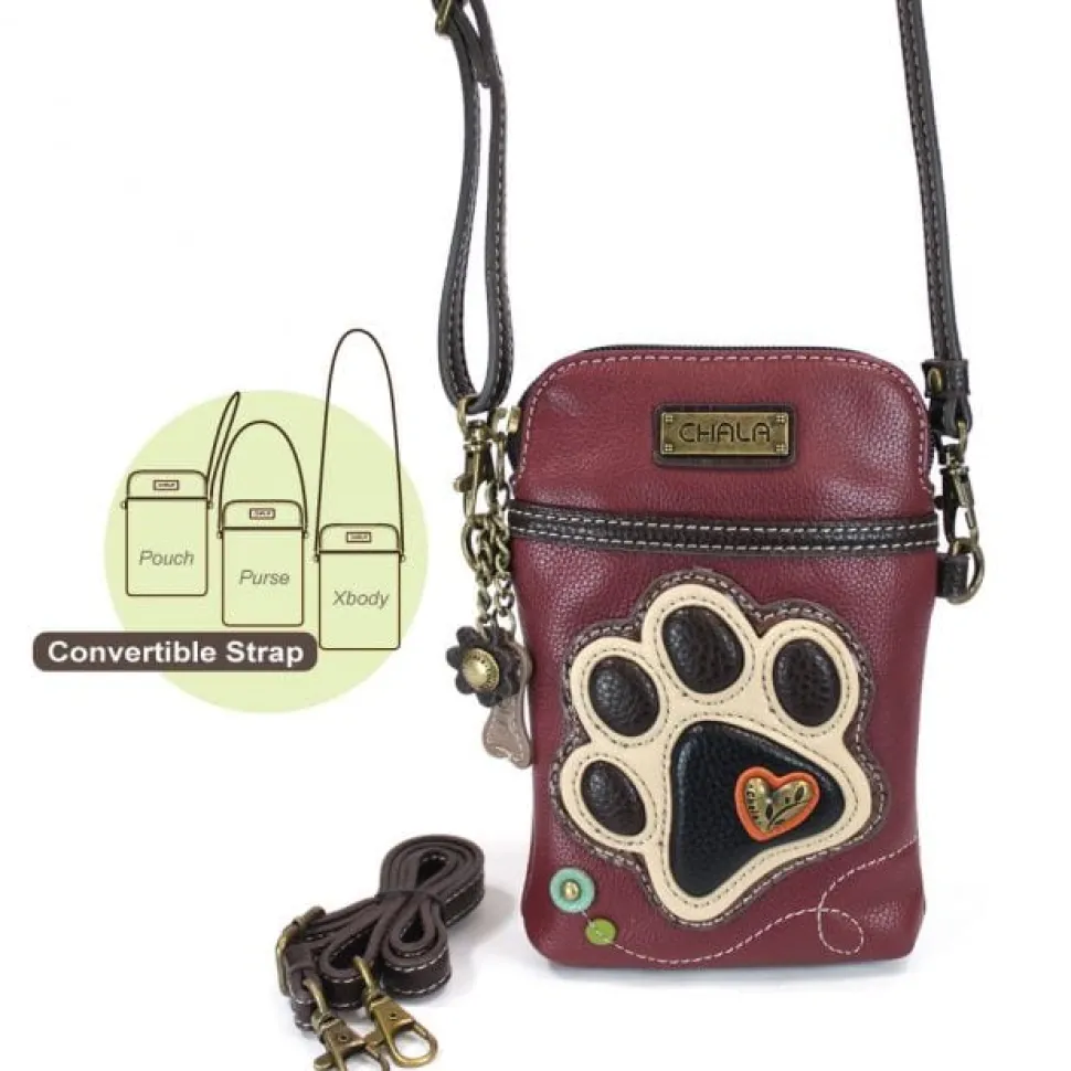 Elegant-looking burgundy red or brown vegan leather with ivory pawprint keychain and handbag collection by Chala. Look great while showing off your love for animals!