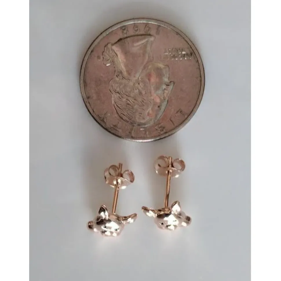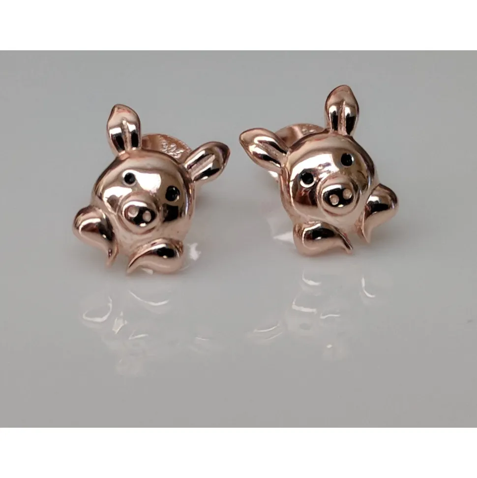 The earrings are PVD plated with rose gold to last longer. Their little eyes are not as black as in the picture.