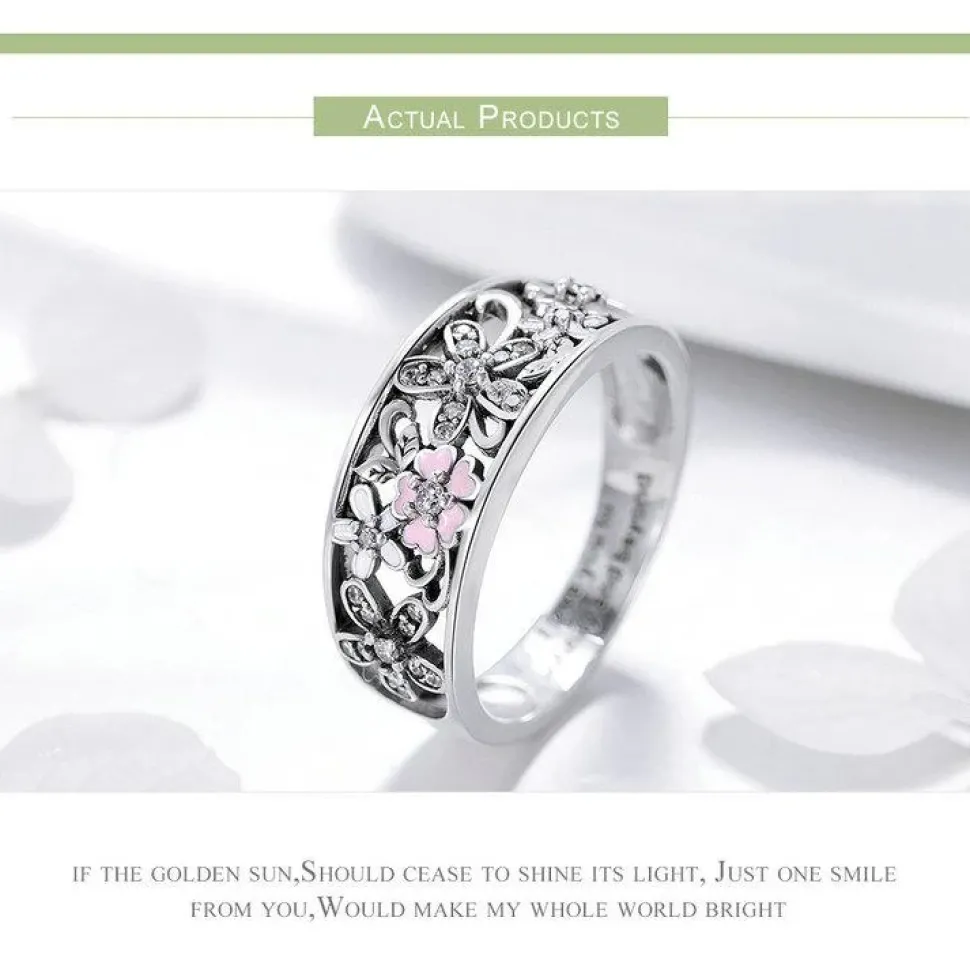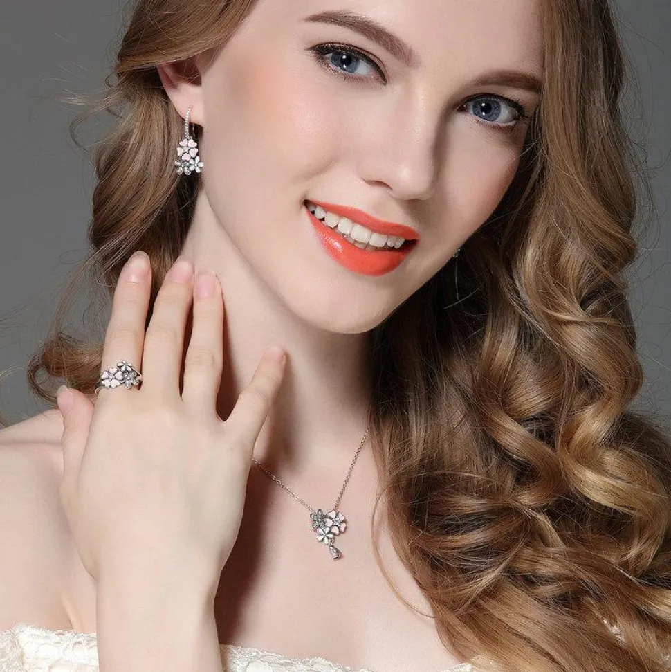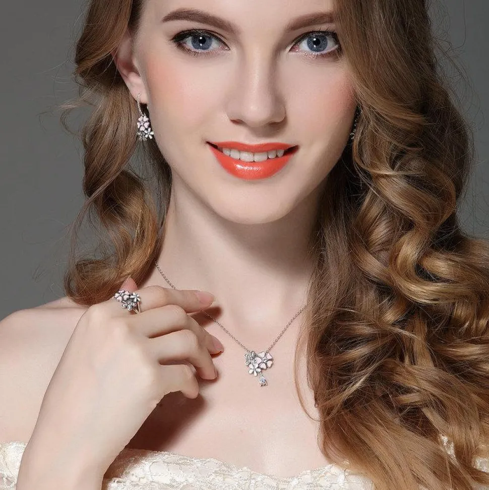 Beautiful pink cherry blossoms and white daisies mark the start of spring. Enjoy them year-round with this gorgeous set of fine sterling silver jewelry. We have post or drop earrings, a necklace with a sparkling teardrop pink cubic zirconia and a lovely ring with “I Love You to Infinity and Beyond” engraved on the inside of it. We knew our lovers of beautiful pink things would find this set irresistible!