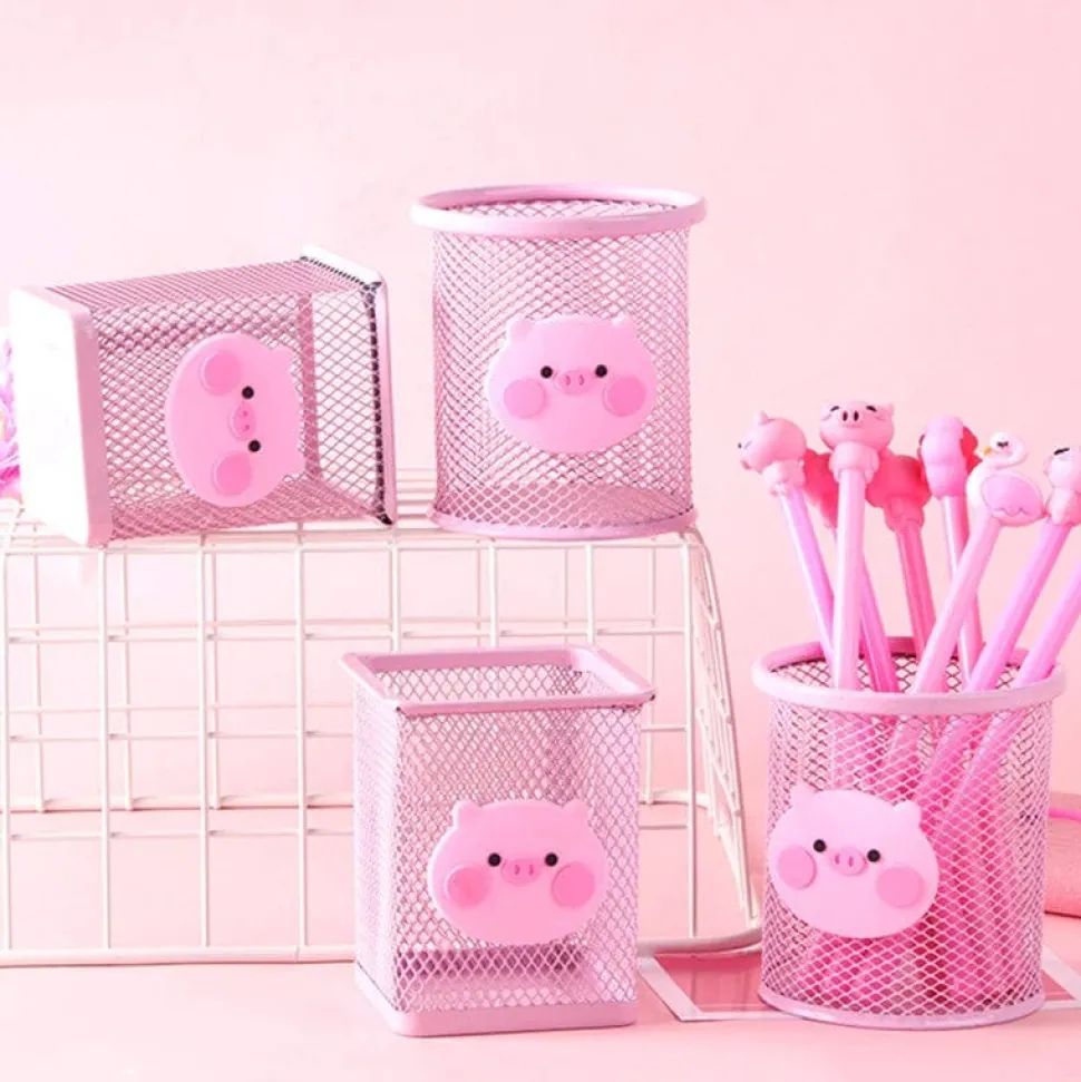 Add your own personality to your home or office with these adorable pink pig wire mesh desk accessories and cutie pink piggy pens. So cute! Pens are black gel ink, fine point, super cute and perfect for the pig lover’s desk.