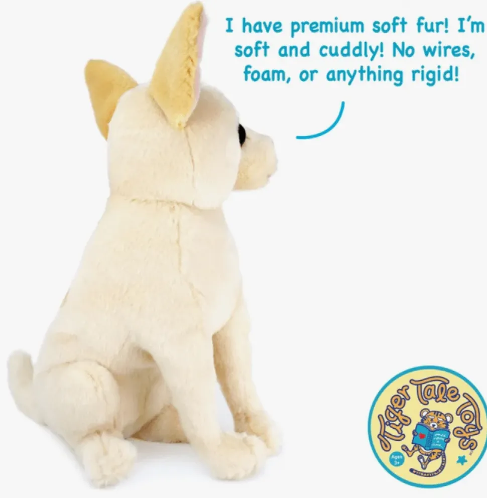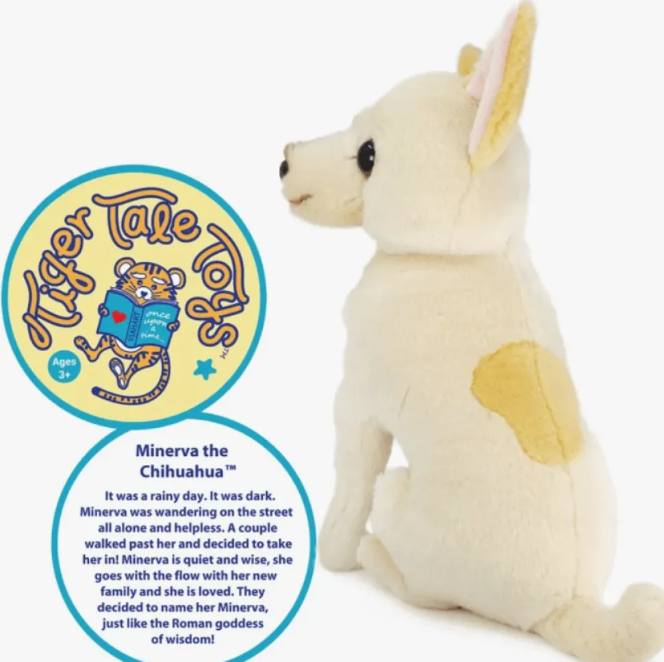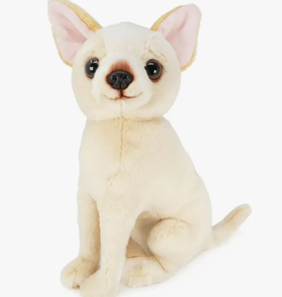 Meet Minerva, a realistic, super soft and cute stuffed Chihuahua puppy dog! Minerva comes with a rescue story and an adoption certificate. She is handmade of premium, soft fur in Indonesia with hand crafted details.