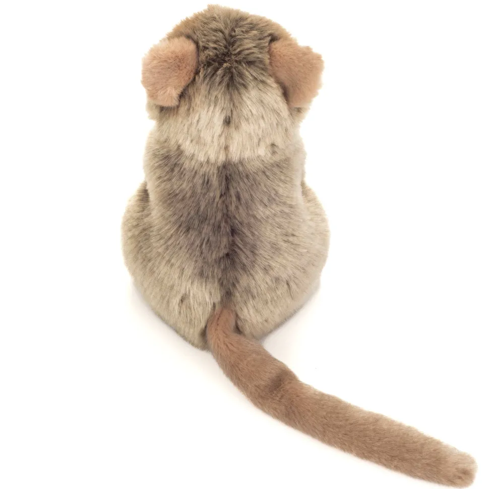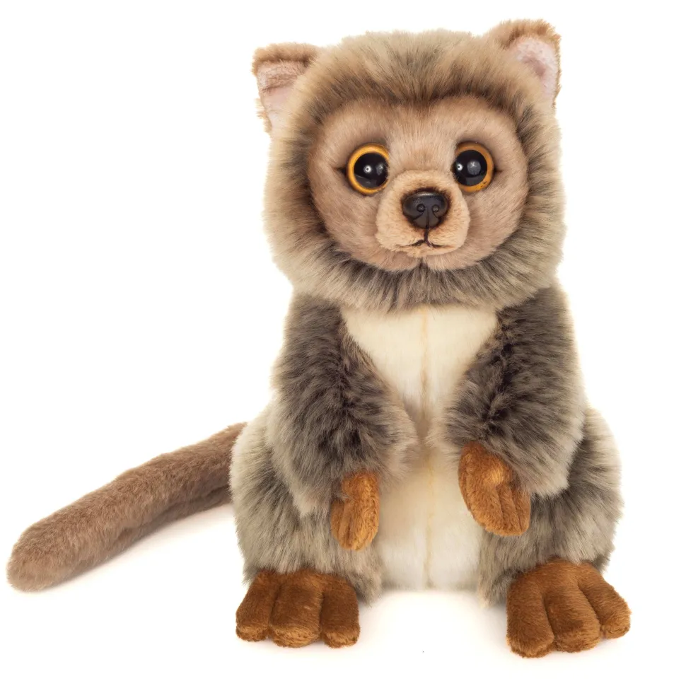 The cute, 21 cm tall mouse lemur is part of the “Teddy Hermann Explains” subcategory and his tag briefly describes his lifestyle with interesting facts about him. Madagascar is his home. The big eyes, the longer hind legs, the white underside and the body-length tail are characteristic of this little cutie. The grey-brown coat of this unusual cuddly toy is incredibly soft and invites you to play and cuddle imaginatively with him.