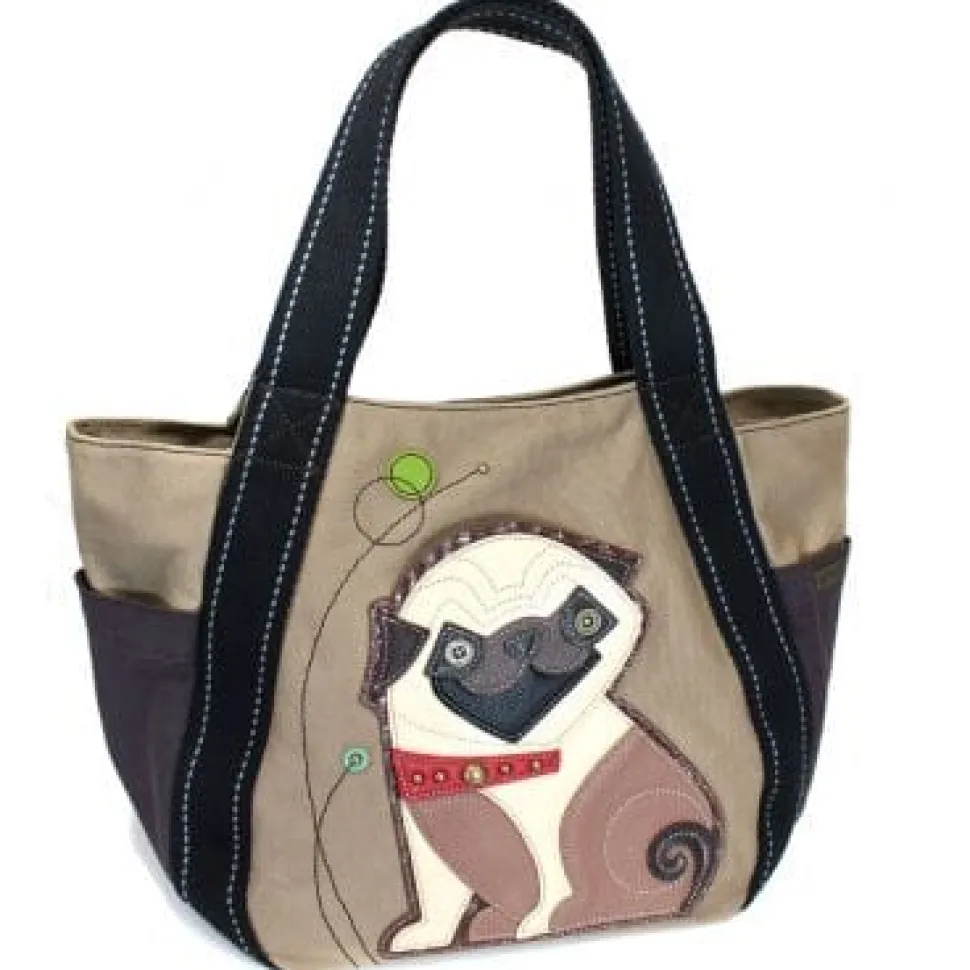Large size canvas Pug dog tote to shop in style! Chala totes are not only the cutest, they are exceptionally high-quality, beautifully designed bags for the busy woman’s lifestyle. These totes will be your all-time favorite with their whimsical chic look. VEGAN. We have smaller size “work totes” with animals too! VEGAN