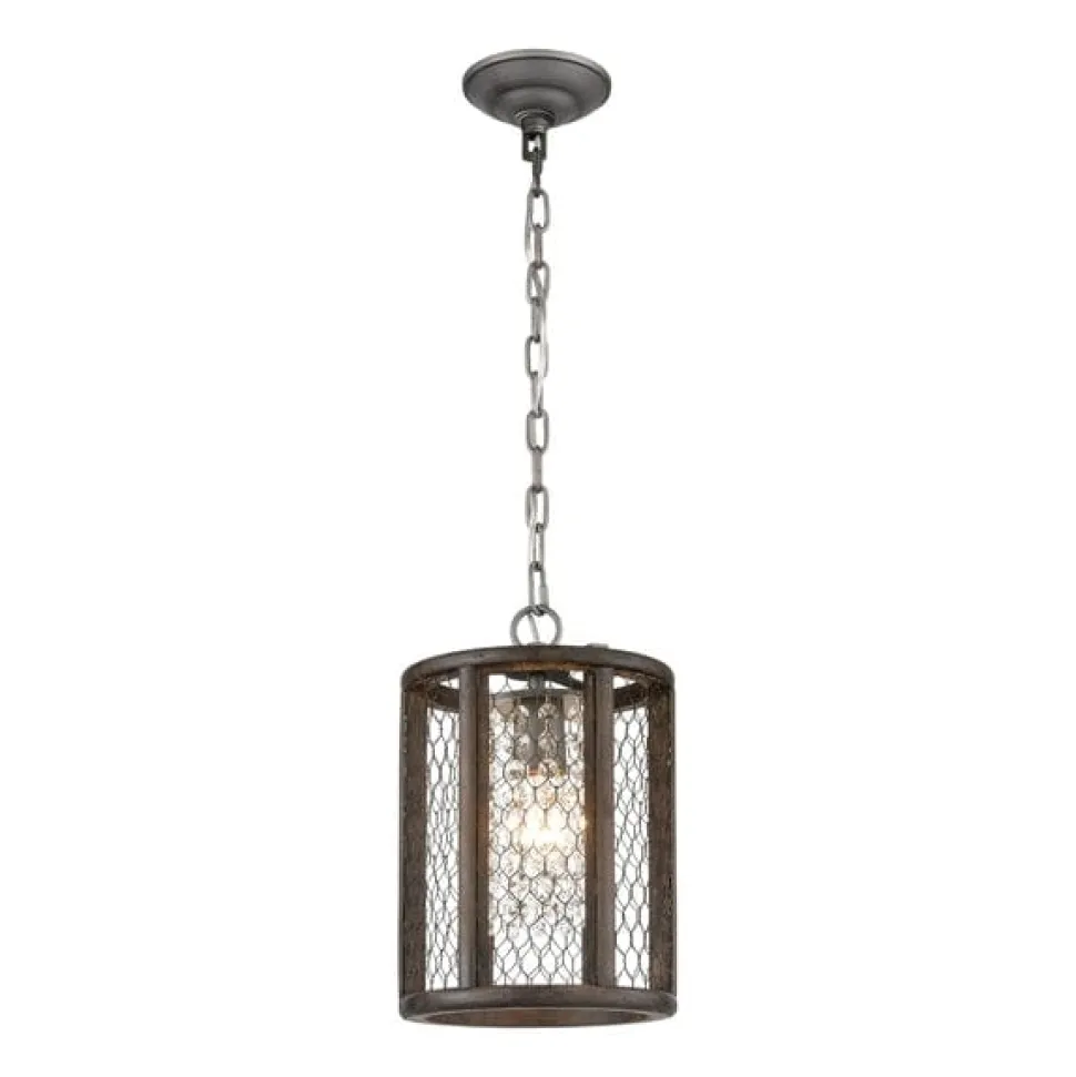 The Renaissance Invention 1-Light Pendant in Aged Wood and Wire adds an elegant touch to any space with its unique design. Crafted with expert craftsmanship, this pendant features a beautifully aged wood finish and wire detailing that creates a vintage look. Enhance your home’s interior with this stunning piece that brings together old-world charm and modern style.