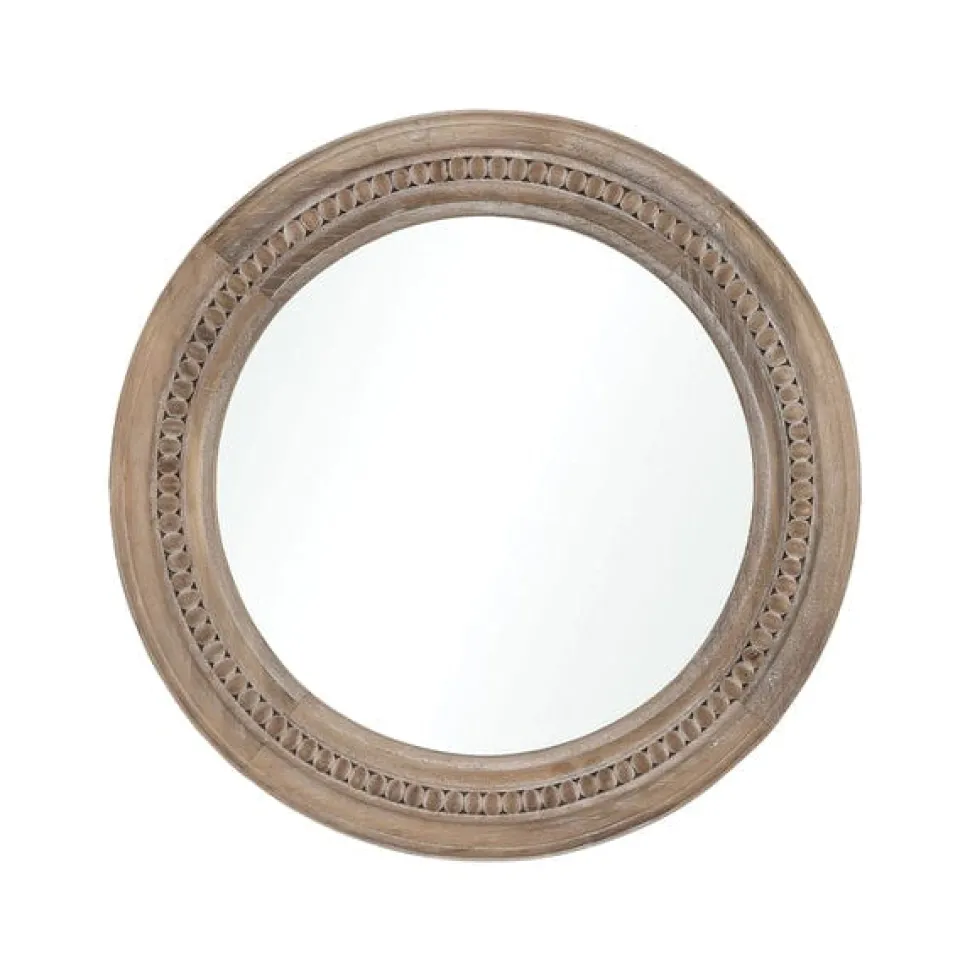 Embellished with carved beading, this accent mirror features a natural fir wood surround in an elegantly aged finish. With notes of driftwood and sun-bleached timber, the Riverrun collection is perfect for dressing a transitional or coastal style interior. Matching items are available in the Riverrun collection.