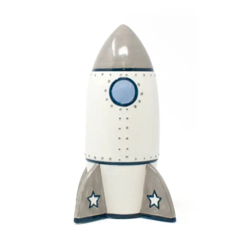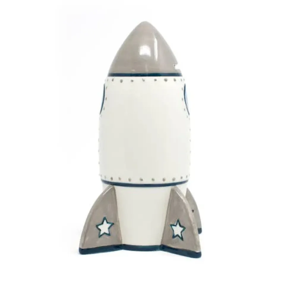 Rocket-Ship-Piggy-Bank: Dimensions 6″ l x 6″ w x 10.1″ h Weight 2 lb