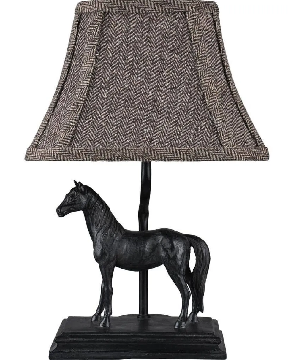 Horse lovers! Beautiful and classic Horse Accent lamp with Antiqued Bronze finish and Tweed shade. A classic look for any room including the den or library. Equestrian enthusiasts will love this piece, perfect for a barn office too.