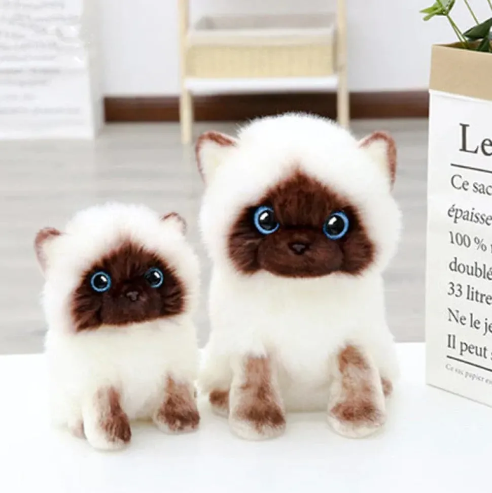 Cute Simulation Siamese Cat Plush Toy with Blue Sequins Eyes, and Super adorable Brown and White Face are available in two sizes small (about 20cm) and Large (about 26cm). All proceeds from your purchase help rescued animals!