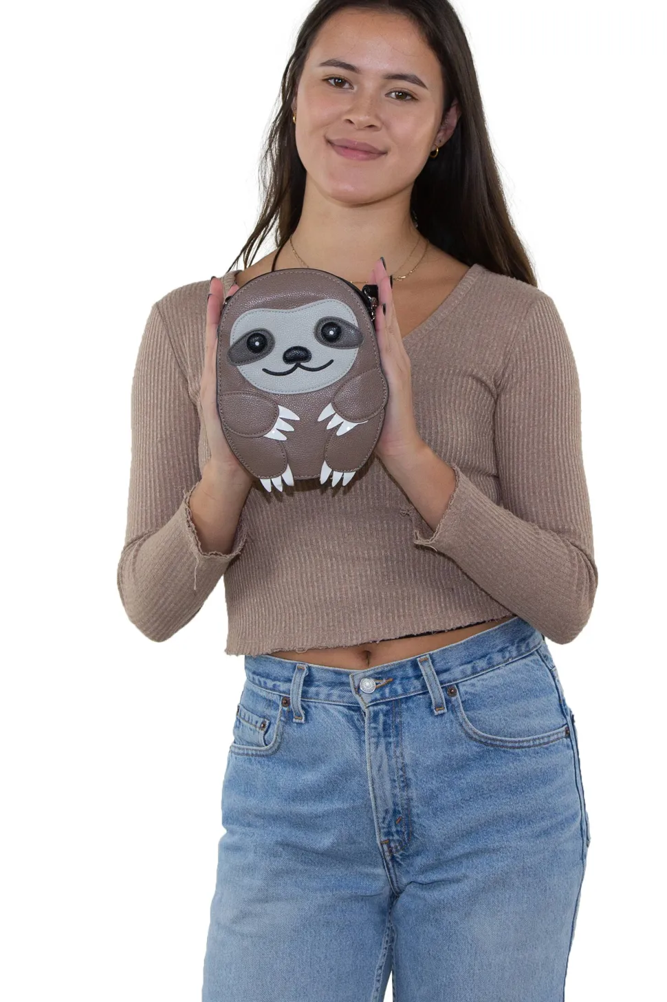 Baby Sloth Shoulder Crossbody Bag. 24″ detachable shoulder strap drop. SO CUTE! 8.2″. Sleepyville Critters Baby Sloth Shoulder Crossbody Bag. 24″ detachable shoulder strap drop. 6.5″ x 2″ x 8.2″.