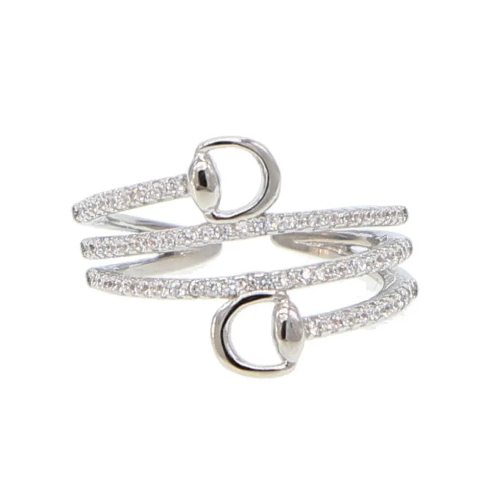 Beautiful fashion ring for the equestrian or horse enthusiast. Lovely snaffle bit wrapped around your finger and loaded with high quality, sparkling cubic zirconia!