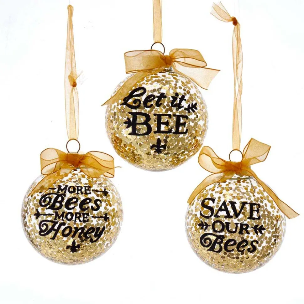 Kurt Adler’s gold glass ball with BEE sayings ornaments are a fun and festive addition to your holiday décor or Christmas tree. Included in this assortment are three glass ball ornaments. Each ornament has a gold ribbon bow and one of the following sayings: “More Bees More Honey”, “Let It Bee” and “Save Our Bees.” Get one or save the most and buy the set! These are beautiful and would make a great gift for the bee lovers in your life.