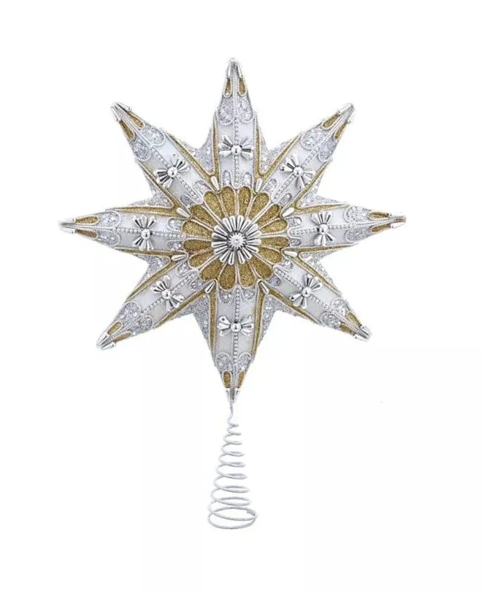 Add the finishing touch to your Christmas tree with this Kurt Adler 8-point white, gold-tone and silver-tone star treetop. Its beautiful 8-point star design has a white and gold-tone finish adorned with platinum accents for an extra festive touch.