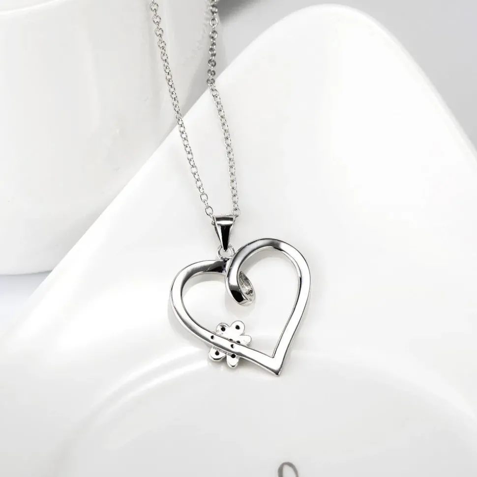 Next is just a simple, elegant heart with a CZ paw on it. Both beautiful necklaces remind us of our pet’s love for us. Choose from these two gorgeous designs, both in rhodium plated solid 925 sterling silver to last for many years of enjoyment. These are sure to become a treasured part of your or your loved one’s jewelry collection!
