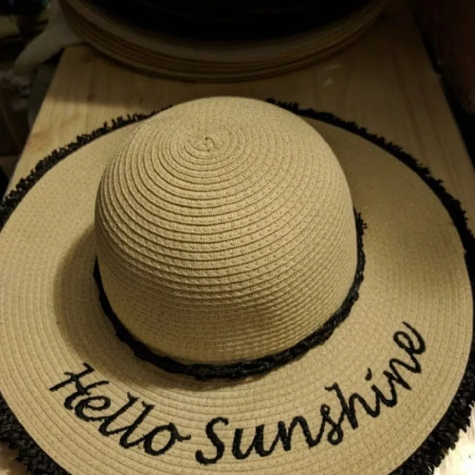 - Think pink with this embroidered woven floppy hat from August Hats.
