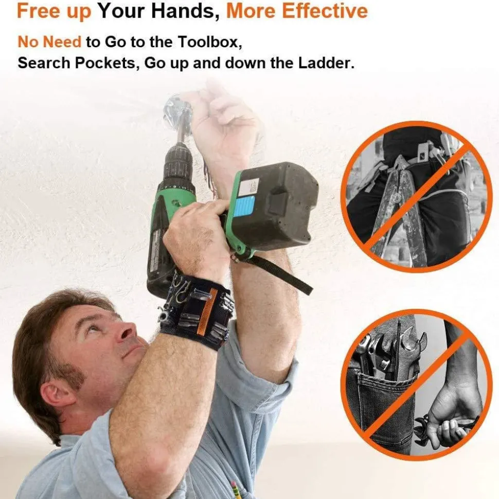 SO when we happened upon this one, we HAD to get it for our friends who enjoy doing things around the house or even for professionals. This is THE magnetic wristband to have! The magnets are even strong enough to hold TOOLS! Our wrist magnet will hold a HAMMER! A full size hammer!