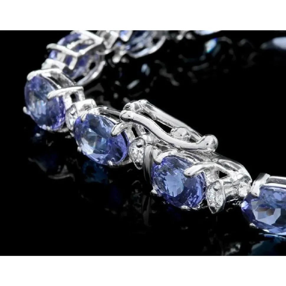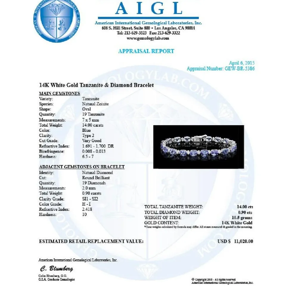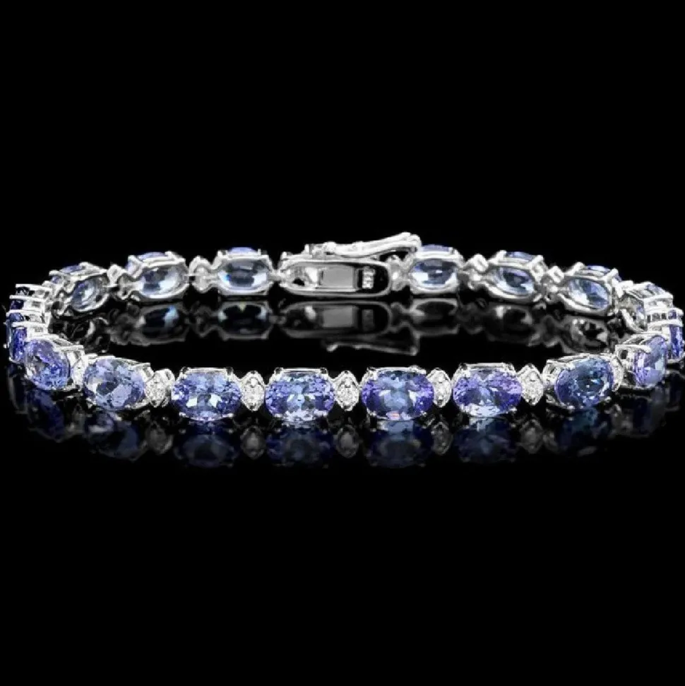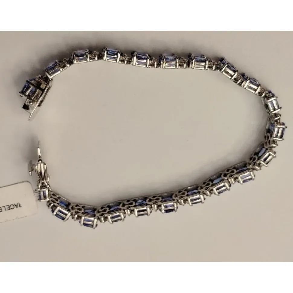 14k 14.00ct Tanzanite 0.90ct Diamond Bracelet ****** Metal: 14k Solid White Gold / Size: 7 / Total Item Weight: 10.5 grams / Country Made: United States / / Main Stone: Tanzanite / Color: Blue / Carat Total Weight: 14.00 / Treatment: None / Clarity: Type 2 / Cut: Very Good / / Secondary Stone: Diamond / Carat Total Weight: 0.90 / Treatment: None / Color Grade: H – I / Clarity: SI1 – SI2 / Cut: Very Good /