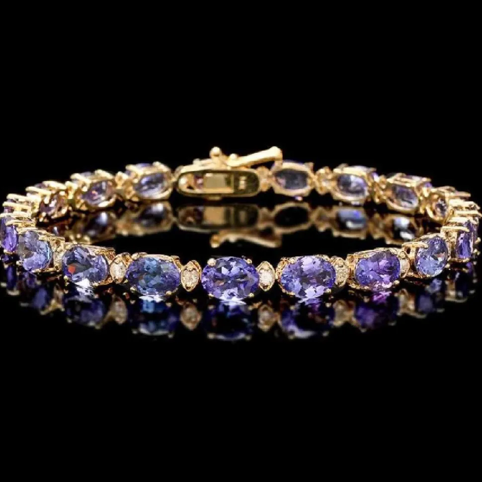 Gorgeous GENUINE Tanzanite and GENUINE Natural Diamond bracelets in your choice of white or yellow gold. These are beautiful and would make your loved one so happy! The 14K white gold bracelet is 14cts of GENUINE Tanzanite and .9cts of sparkling GENUINE Natural Diamonds bracelet, The 14K Yellow Gold bracelet is 17cts of GENUINE Tanzanite and .8cts of dazzling GENUINE Natural Diamond Bracelet These gorgeous bracelets are made so affordable because we are buying directly from the manufacturer and we don’t have the big overhead of fancy jewelry stores. You will not find bracelets of this quality in a mall jewelry store. White bracelet is 7″, Yellow is 7.5″.