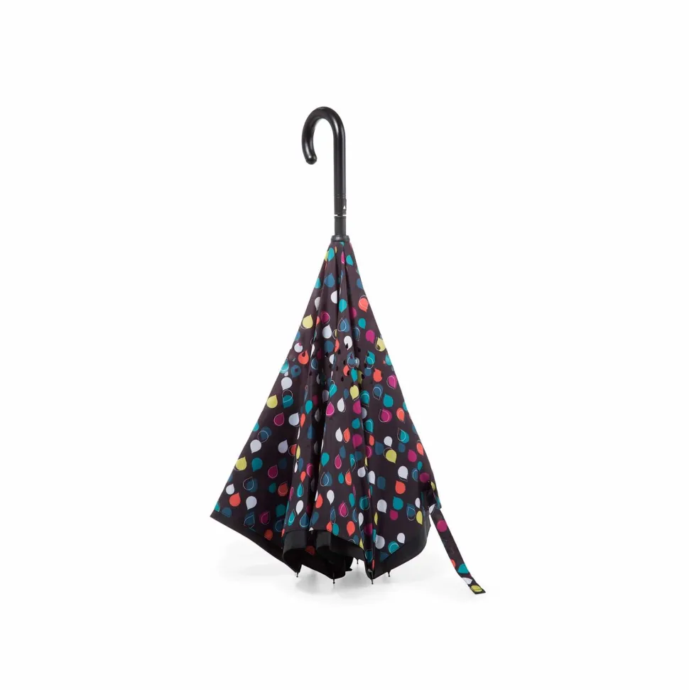- Reverse-close umbrella closes inside out, keeping water away from you