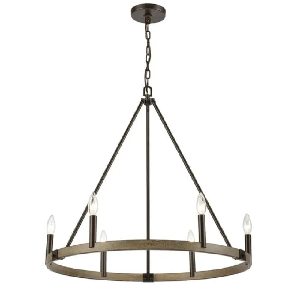 Illuminate your space with the Transitions 6-Light Chandelier in a sleek, rustic Aspen finish. This expertly crafted fixture adds a touch of elegance to any room with its six lights and striking design. Perfect for creating a warm and inviting atmosphere for entertaining or daily use.