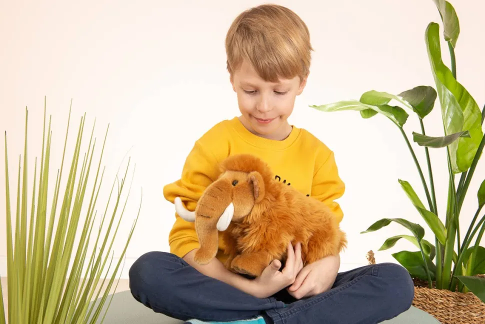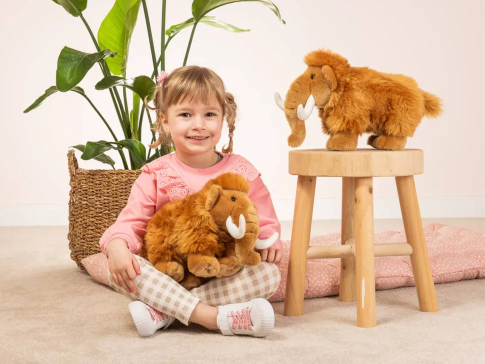 For the Dinosaur lovers, this 30 cm tall mammoth from the Hermann Teddy Collection is a delightful contemporary toy, filled with exciting details. Its carefully crafted trunk, large tusks, charming button eyes, and contrasting soles make it a unique playmate. The fluffy, soft fur invites you to pet and cuddle with it. Eco-friendly recycled cloud-soft stuffing makes this an earth-friendly choice.
